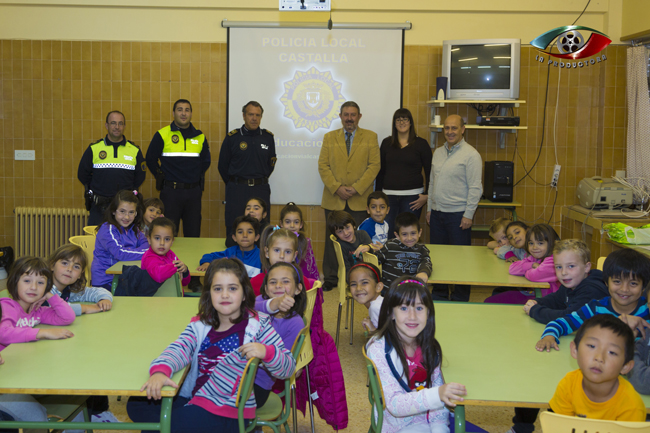 Ayer 11 de noviembre se inició el nuevo curso escolar de Educación Vial, impartido por los miembros de la Policía Local de Castalla, y dirigido a los escolares de los colegios Maria Asunta y Rico Sapena, más concretamente a los alumnos de 1º, 2º, 3º y 4º de Primaria. Las clases se han distribuido durante los tres trimestres del curso escolar 2013-2014, con las materias de “El uso de la bicicleta”, “Normas básicas de circulación” y “El Peatón”.
