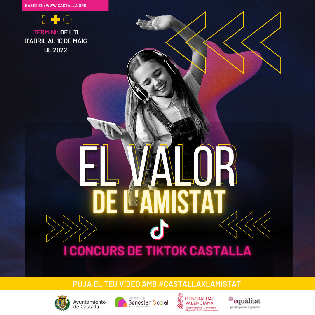 Es convoca un concurs de TikTok per a la reflexió sobre el valor de l’amistat entre la població adolescent de Castalla. Es recopilaran vídeos per a conéixer què és per a l’adolescència l’amistat i quin és el seu valor, així com quina importància li donen en els diversos àmbits de la seua vida. Mitjançant el concurs es pretén estimular la reflexió i la creativitat, amb l’objectiu de mentalitzar a la joventut sobre l’empatia, la solidaritat i el compromís promovent un intercanvi de respecte i lleialtat, pel fet que l’amistat no es basa en els prejudicis. Els dos vídeos guanyadors obtindran un premi sobre la base dels criteris establits en la convocatòria.