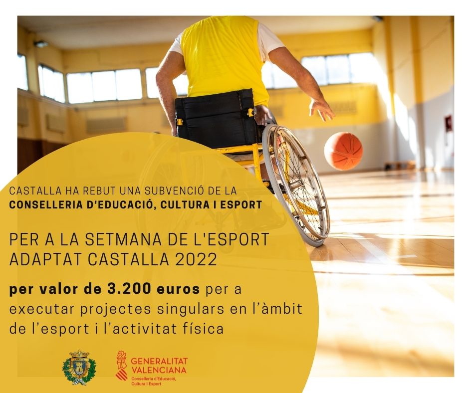 El Ayuntamiento de Castalla ha recibido una subvención de la Conselleria de Educación, Cultura y Deporte de la Generalitat Valenciana para ejecutar proyectos singulares en el ámbito del deporte y la actividad física por valor de 3.200 euros. Esta ayuda se va a destinar a la iniciativa “Semana del deporte adaptado Castalla 2022”.