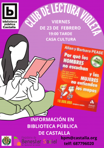 La próxima sesión del Club de Lectura será el viernes 23 de febrero a las 19.00h. En la Biblioteca.