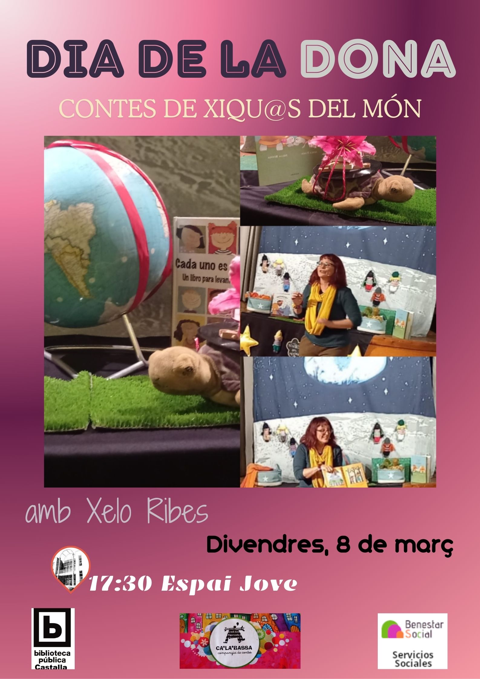 Con motivo del Día de la Mujer, la Biblioteca Pública y Servicios Sociales, organizan un cuentacuentos pata todos los públicos “Cuentos de niñ@s del mundo” a cargo de Xelo Ribes, de la compañía Ca´La´Bassa.