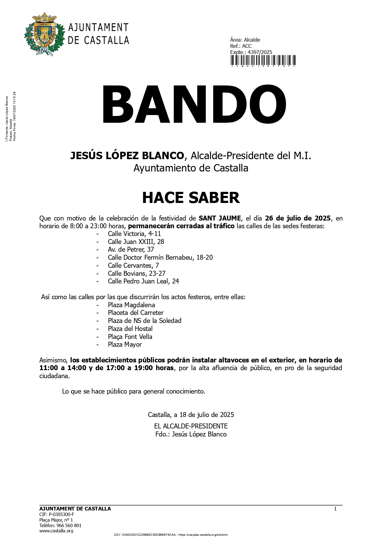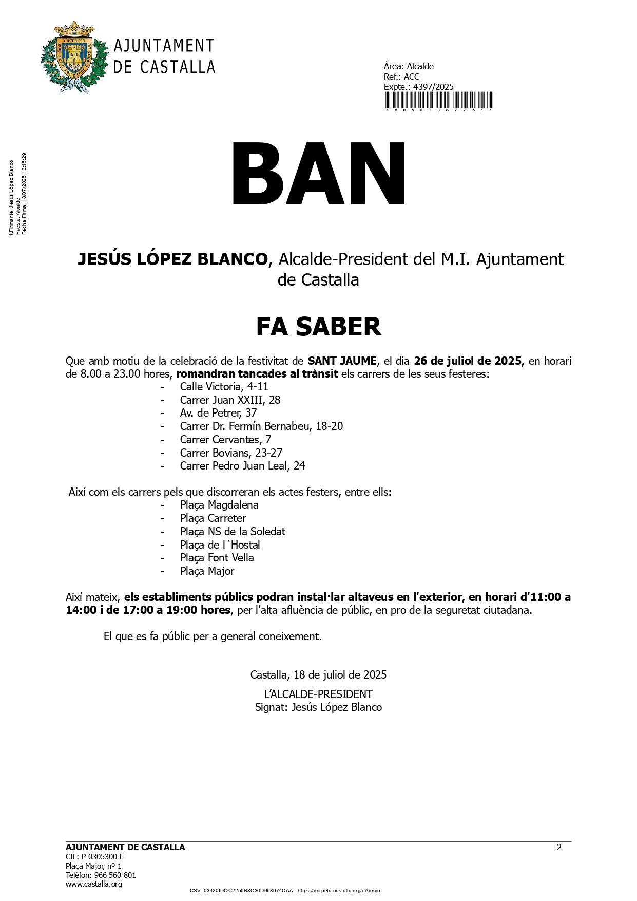 Aquí podéis consultar las calles que estarán cerradas al tráfico con motivo de la festividad y por dónde transcurrirán los actos festeros.
