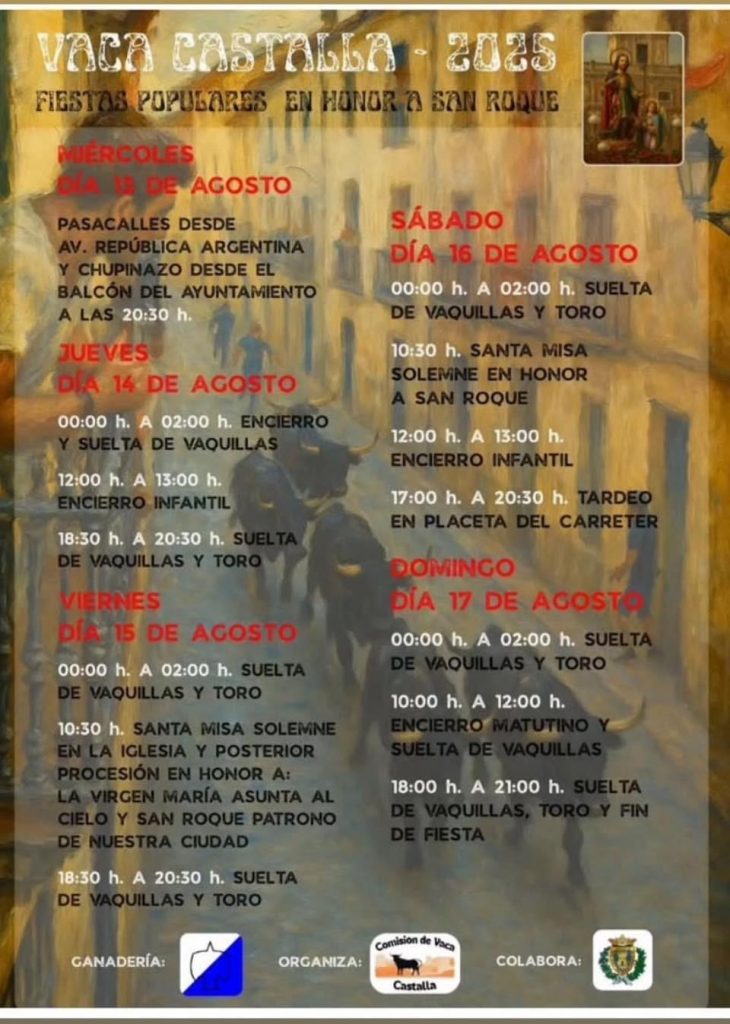 L’Ajuntament de Castalla ha presentat la programació de les Festes de Vaca 2025. Les celebracions populars en honor a Sant Roc, el patró de la ciutat, es duran a terme del 13 al 17 d’agost. El consistori organitza aquests festejos taurins en col·laboració amb els membres de la Comissió de Vaca i amb la participació de la Ramaderia “La Paloma”.