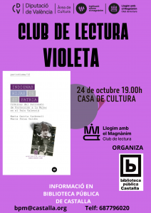 Podemos disfrutar de la lectura de Indignas gracias a la Institució Alfons el Magnànim-Centre Valencià d’Estudis i d’Investigació que empieza un nuevo proyecto de club de lectura en las bibliotecas públicas con su propio fondo. El Magnànim pone a disposición de los clubes de lectura un lote de 24 ejemplares y una guía de mediación lectora para facilitar la tarea de la persona encargada de conducir la sesión del club de lectura.