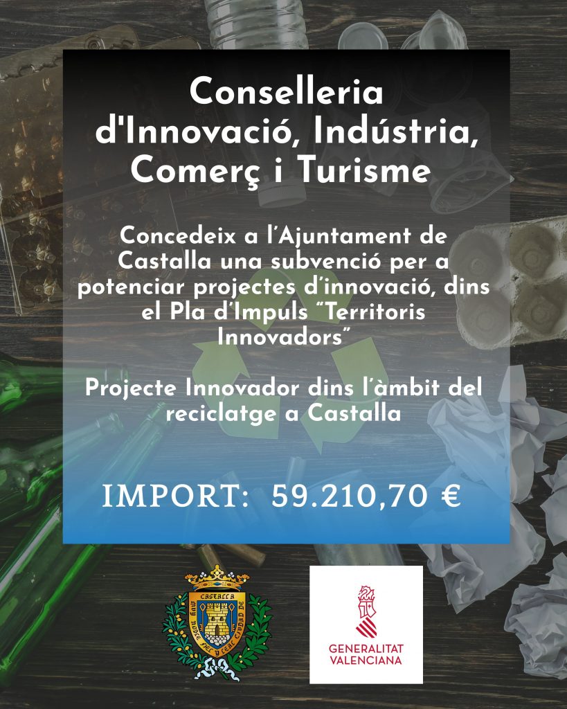 Amb aquesta ajuda es durà a terme un projecte de caràcter innovador dins l’àmbit del reciclatge a Castalla.
