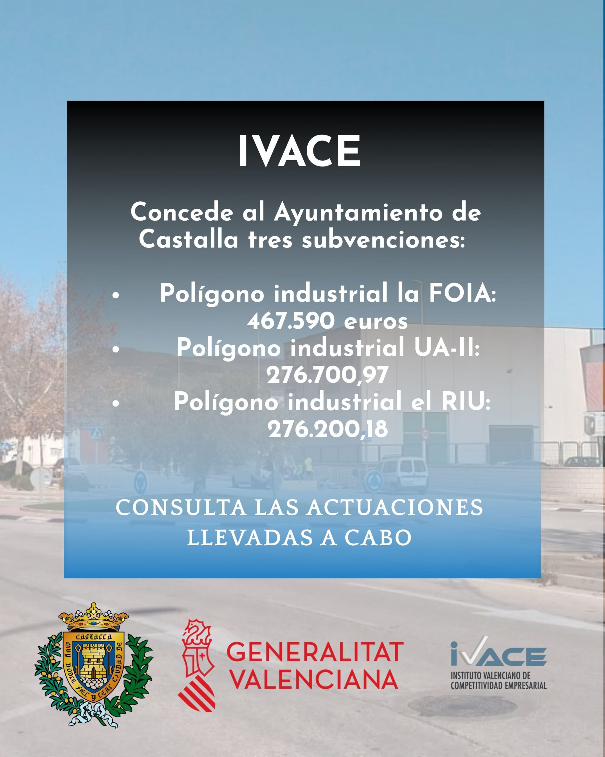 El Instituto Valenciano de Competitividad Empresarial (IVACE) ha concedido al Ayuntamiento de Castalla tres subvenciones.
