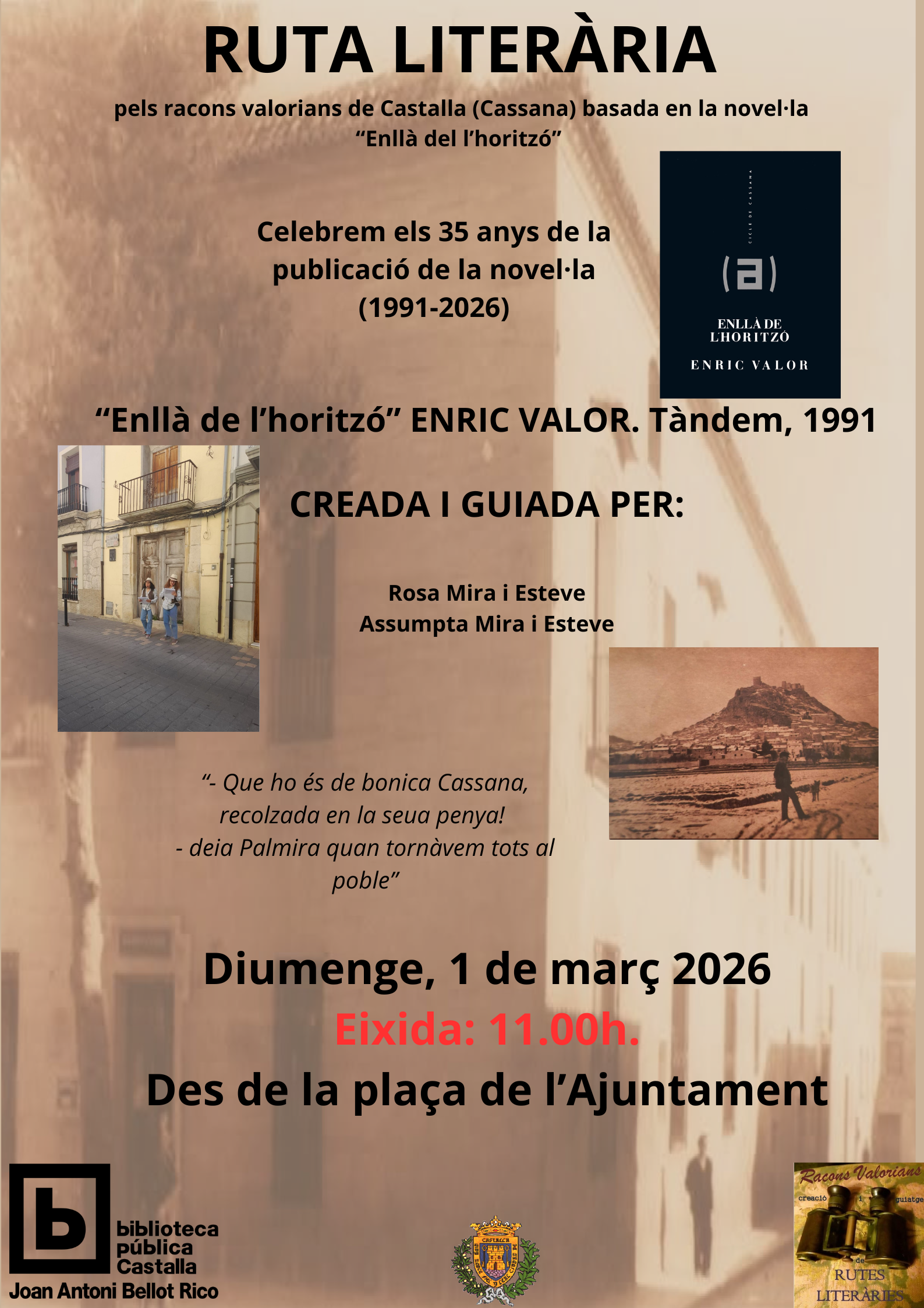 El próximo domingo 1 de marzo podremos disfrutar de una ruta literaria por los rincones valorianos de Castalla basada en la novela «Enllà de l’horitzó» de Enric Valor.