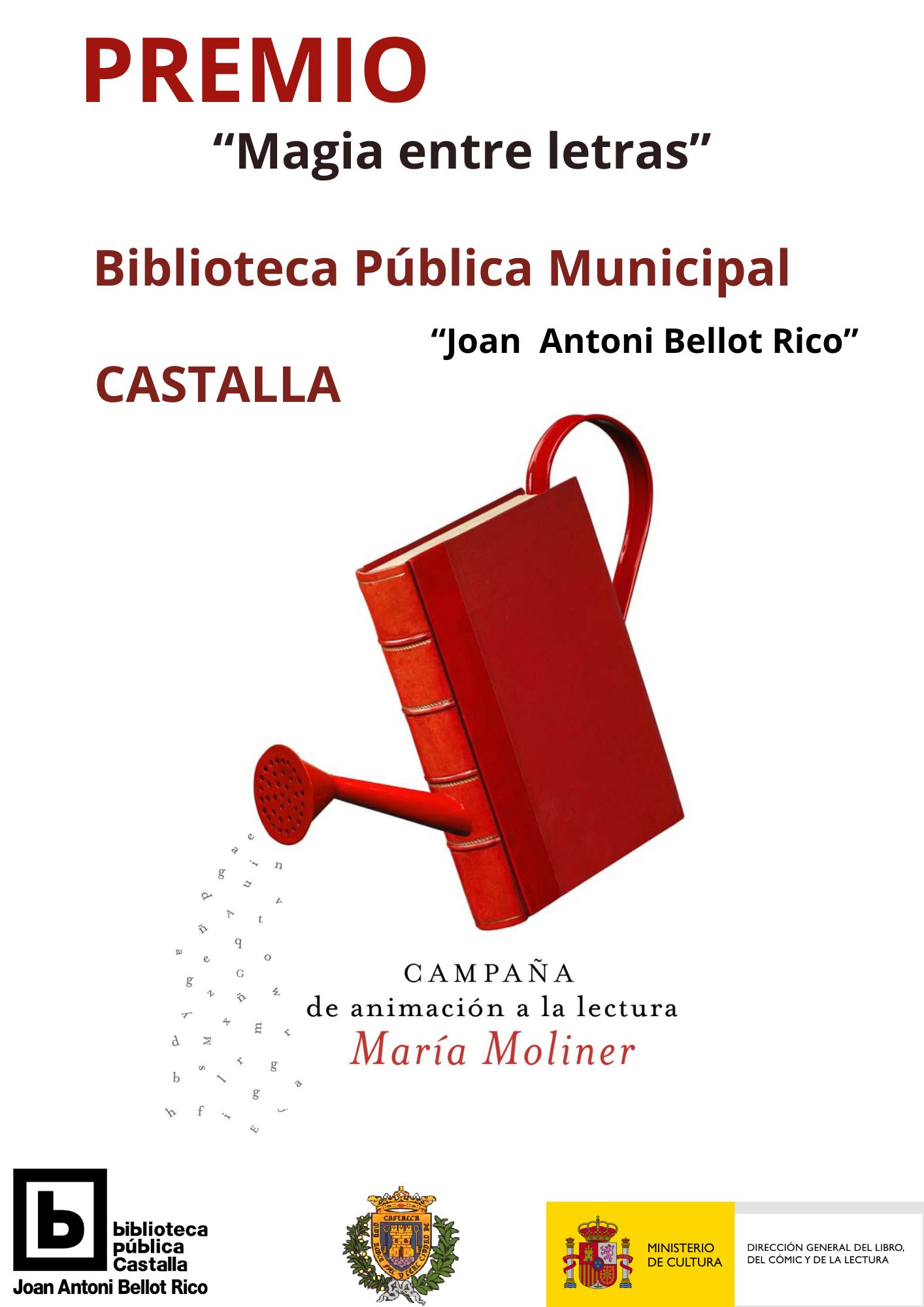 La Biblioteca Pública Municipal “Joan A. Bellot Rico” de Castalla ha sido reconocida en el Concurso de Animación Lectora “María Moliner” convocado por la Dirección General del Libro, del Cómic y de la Lectura.