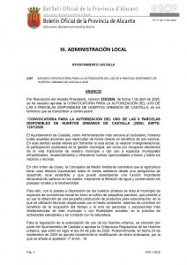 Convocatoria para la autorización de uso de las 6 parcelas disponibles de huertos urbanos de Castalla.