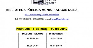 Del 11 de mayo al 30 de junio el horario de la Biblioteca se amplía…