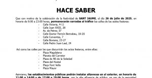 Bando Sant Jaume Aquí podéis consultar las calles que estarán cerradas al tráfico con motivo…