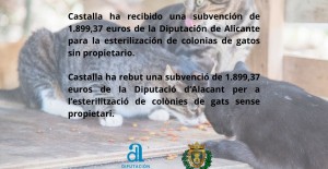 Castalla recibe 1.899,37 euros de Diputación para la esterilización de colonias de gatos